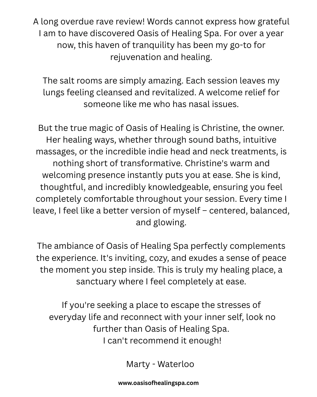 I own Oasis of Healing Spa with Salt Caves in Waterloo